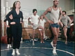 1980s medium shot men and women kicking their legs up during an aerobics class - stock video