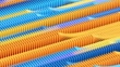 Digital generated animation of multicolored dominoes falling over
