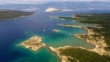 Aerial footage of idyllic beaches in the Lopar part of the Rab island by the Adriatic sea in Dalmatia part of Croatia. Shot with a rotation motion
