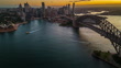 4K Aerial view Hyper lapse Footage of above Sydney Harbour Bridge, Circular Quay and Sydney Daring Habor Office and Luxury Building group, New South Wales, Australia, Travel and Transportation concept