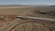 Aerial view of new Highway bridge under construction Mojave desert a remote Extreme Terrain Wilderness area Las Vegas Nevada Southwest USA RED WEAPON