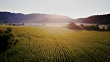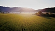 Drone flight over a field of grain growing at a farm in Tillamook, Oregon.