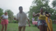 African American couple dances in a soul train line during backyard party - 4K stock video