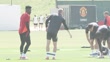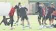 MANCHESTER, ENGLAND - MAY 20: André Onana, Christian Eriksen, Ayden Heaven, Diogo Dalot and the rest of Manchester United's players warm up during a training session ahead of UEFA Europa League Final against Tottenham Hotspur at Carrington Training Ground on May 20, 2025 in Manchester, England. (Footage by Niche Sport Media via Getty Images)