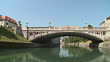 POV Boat on Ljubljanica River, passing under Dragon's Bridge (art nouveau style), Ljubljana, Slovenia - HD stock video