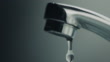 Silver tap dripping. Broken faucet in the tub dripping water.