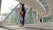 Business woman, luggage and travel with a phone while walking at airport or hotel with internet. Professional female person with a suitcase for a corporate trip with smartphone for flight schedule - 4K stock video