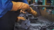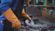 Casting parts in cooling line, operator separate good parts with gating by hammer, operator work hard in foundry factory - 4K stock video