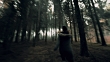 POV camera stabilization shot of a terrified young woman running for her life through the forest like someone or something would chasing her directly behind her back. Also available in 4K resolution.