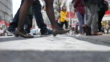 Close-up of Leg People walking on the crosswalk