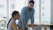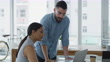 4k video footage of two businesspeople working together on a laptop in an office
