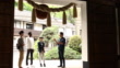 A craftsman explains the decorations to tourists visiting a sake brewery on a trip to Japan. - 4K stock video