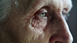 Senior woman wipes her eye