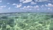 Shot of Crystal clear waters at San Andres Island with Johnny Cay island on background in Colombia