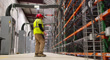 A technician wearing PPE working on racks of equipment in a data center for cryptocurrency mining, cloud services and AI computing in a large, temperature controlled warehouse in a remote location in Stutsman County, North Dakota.