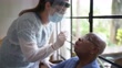 Doctor taking sample for covid test at home - wearing face mask - 4K stock video