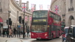 Double decker buses drive one after another down busy London street and stop for pedestrians crossing. - HD stock video