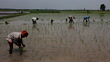Farmer working in the rice paddy field - HD stock video