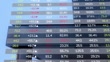 Finance stock price list with business district city building background.Stock exchange market and investment. Bank. 3d illustration - 4K stock video