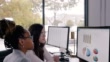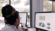 As they work together on financial figures, two female financial analysts examine charts and graphs on a desktop computer.