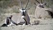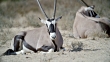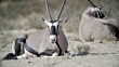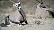 WS Gemsbok (Oryx gazella) lying down / Kgalagadi Transfrontier Park, Kgalagadi District, South Africa - HD stock video