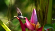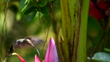 Green Hermit female feeding in banana flower. Hummingbird in flight. - 4K stock video