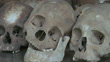 PAN CU Human skulls displayed at Choeung Ek, a Killing Fields memorial / Phnom Penh, Cambodia - HD stock video