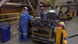 CLEAN: Interior shots of molten gold being poured from a crucible into moulds, and workers removing gold ingots from the moulds to be cooled on September 25, 2017 in Eureka, Nevada.