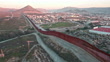 International Border Wall Between Tecate California and Tecate Mexico Near Tijuana Baja California Norte at Dusk Under Stunning Sunset with View of the City From the USA, Aerial View of the International Border Between Mexico and The USA, Drone View of the International Border Between Mexico and The United States