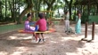 Kids playing in a merry-go-round while their mothers look in the park - 4K stock video