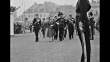 King Haakon VII and Queen Elizabeth II review Norwegian honor guard during Queen's visit to Norway; Philip, Duke of Edinburgh, follows / CU honor guards presenting arms / aerial motorcade passes crowds on streets of Oslo / Queen waves as she rides in car with King / Norwegians wave / rear shot motorcade moves away toward Royal Palace in background / montage crowds on Palace grounds / Queen and Duke stand on balcony with King and Crown Prince Olav / tilt-down shot Queen and Duke at garden party / Queen smiles at Duke as they stand in crowd with Princesses Ragnhild and Astrid / Queen and Duke at center of crowd / EXT royal residence Skaugum in Asker, Norway