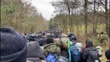 POLAND - BELARUS BORDER - NOVEMBER 15: Latest footage from Poland-Belarus border on Monday, Nov. 15, shows hundreds of migrants walking through forests to reach the border area and waiting for crossing to European countries.At least 2,000 people, including women and children, have got stuck at the Belarus-Poland border area in dire conditions since last week.According to the EU, the Belarusian regime reaches out to potential travelers by seemingly official channels, through diplomatic representations or travel agencies, and invites them to Belarus by offering visas and guiding them to the EU border.NATO and the EU consider Belarus’ approach towards migrants as a hybrid attack meant to destabilize and undermine security in European countries through non-military means.EU countries bordering Belarus – Lithuania, Latvia and Poland – have been reporting a dramatically growing number of irregular crossings since August.Over 8,000 people tried to enter the bloc via the Belarus-EU border so far this year, up sharply from just 150 last year. (Footage by Stringer /Anadolu Agency via Getty Images)
