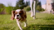 Little cute girl and pet dog walking, running, having fun in summer park at sunset outdoors. Сhild holding hugging her favourite pedigree dog friend, Happy family kid friendship dream holiday concept