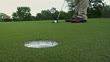 CU Man hitting golf ball into hole on golf course / Atlanta, Georgia, USA - HD stock video