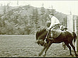 1924 B/W WS Man riding bucking bronco wearing chaps + holding cowboy hat in hand / South Dakota, USA - stock video