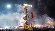 Mesmerizing display of an illuminated dragon dance during a vibrant night carnival, enriched with colorful lights Ferris wheel, traditional celebration of culture and festive atmosphere.