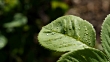 Morning dew on rose leaves in the sunlight
