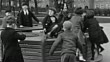 1937 MONTAGE Mothers walking with children and prams, residents sitting on bench in inner city park, children standing by reflecting pool and playing on playground equipment and slide / London, England, United Kingdom - HD stock video