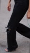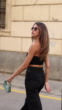 BARCELONA, SPAIN - SEPTEMBER 7: (SLOW-MO) Núria Oliu is wearing black ripped denim jeans, cropped top, a turquoise bag and heels on September 7, 2022 in Barcelona, Spain. (Footage by Christian Vierig/Getty Images)