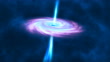 Animation showing the collision of two neutron stars, forming a black hole. The collision of the two massive, dense bodies forms a supernova-like explosion and produces strong gravitational waves. After the explosion, an accretion disc of material is seen around the black hole. Jets of electromagnetic radiation are seen emanating from the black hole's magnetic poles, as an accretion disc has formed around it. If the combined bodies have a mass below the Tolman-Oppenheimer-Volkoff limit, a neutron star or pulsar is produced instead of a black hole