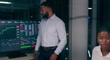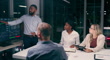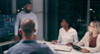 Night, graphs and business people with presentation, investment and teamwork for planning, finance or cooperation. Staff, evening or group with ideas, accounting or charts for feedback or fund report - 4K stock video