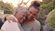 4k video footage of a woman embracing her senior mother while standing outside