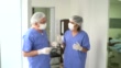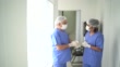 Nurse colleagues talking at corridor before an surgery on hospital - 4K stock video