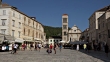 People in old town on St. Stephen's Square with cathedral Sv. Stjepan - 4K stock video