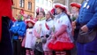 COLOGNE, GERMANY - FEBRUARY 16: (EDITOR’S NOTE: Audio/music licensing is not included.) People sing at the annual Rose Monday street parade on February 16, 2026 in Cologne, Germany. Rose Monday is the highlight of Carnival season, especially in western Germany, where parade float designers are famous for often searing and irreverent depictions of German and foreign politicians. (Footage by Elena Romanova/Getty Images)