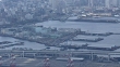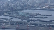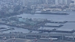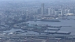April 13, 2017, aerial shot of Yamashita Wharf located in front of Yamashita Park; zoom out to waterfront area of Yokohama and Port of Yokohama