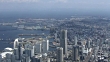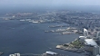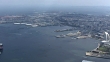 April 13, 2017, aerial shot; from Minato Mirai 21 district, a seaside urban area in central Yokohama, to Port of Yokohama