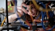 Cute programmer girl setting up a crypto miner, to start mining for some crypto currency.