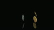 SLO MO CU US quarter changes into a dime and two pennies flipping and bouncing on reflective surface / Chelsea, Michigan, USA. - HD stock video