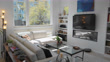 A peaceful living room with modern devices throughout the room